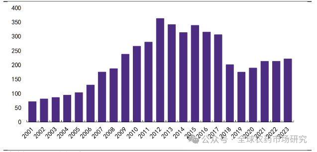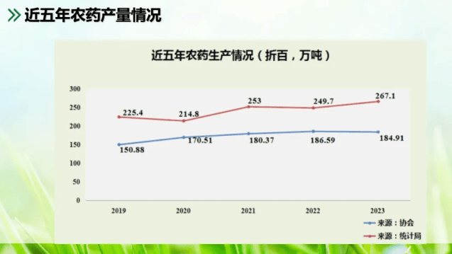 2014-2019 年,我国通过地盘、“三废”排放量大、污染严沉的农药新减产能,能耗高、手艺程度低、污染物处置难的农药产物的出产转移,加速掉队产能裁减。期间我国农药原药产量下滑,这是我国农药行业逃求高质量成长的成果。2020年以来,跟着满脚复产前提企业数量的添加和新产能逐渐,农药全体供应好转。2021-2022年,受疫情影响,农药企业开工率不脚,农药供无限,叠加上逛原材料跌价,最终农药价钱大幅上涨带动农药市场进入高景气阶段。2023 年以来,跟着新冠疫情管控终结,市场预期经济强劲反弹,农药行业投资再次兴起,农药产物进入新一轮产能扩张,热点产物规划投建产能持续增加。按照监测,2021-2023前三季度国内农药行业新减产能杀虫剂 13。94万吨/年、杀菌剂 17。84万吨/年、除草剂 24。21万吨/年、两头体 113。5万吨/年以及制剂 53。64 万吨/年。投资最热品种包罗除草剂草铵膦(精草铵膦)、烯草酮;杀虫剂氯虫苯甲酰胺、啶虫脒和联苯菊酯;杀菌剂丙硫菌唑、吡唑醚菌酯。规模化产能集中导致阶段性供给过剩,企业合作激烈。